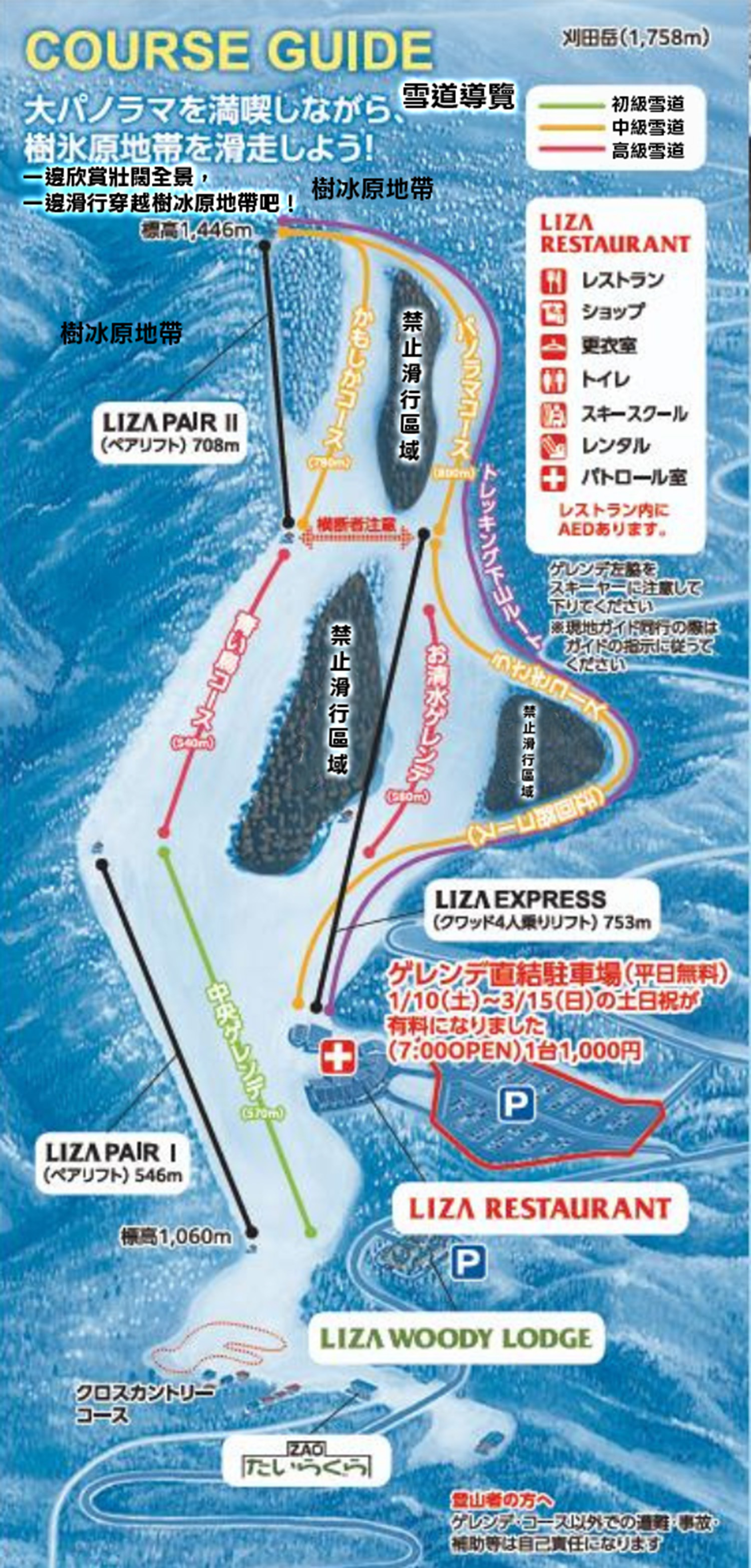 • 雪道狀況包含雪道數量、坡度變化及寬敞程度,會直接影響整體滑雪體驗。這部分建議上網查看網友心得更準確。