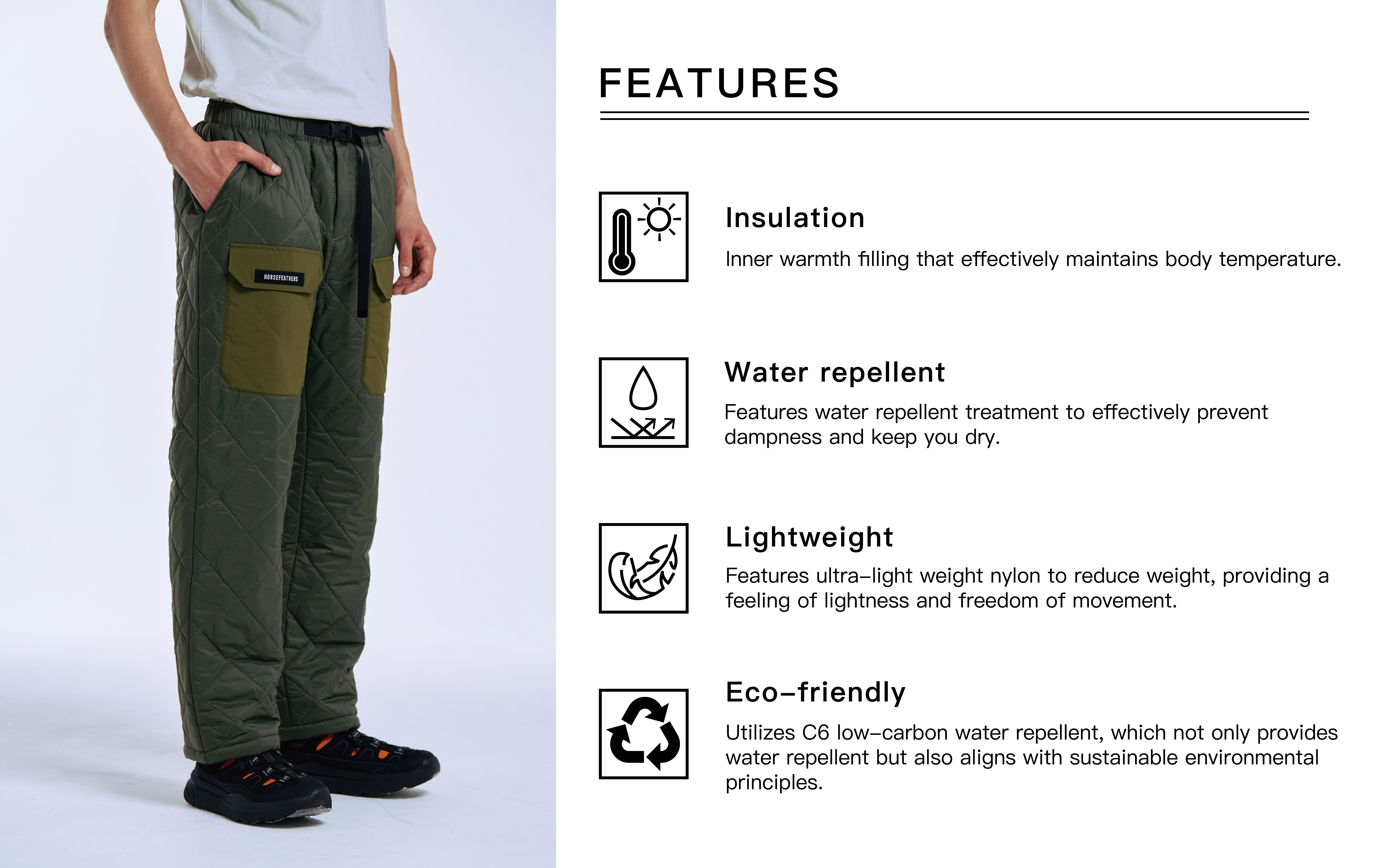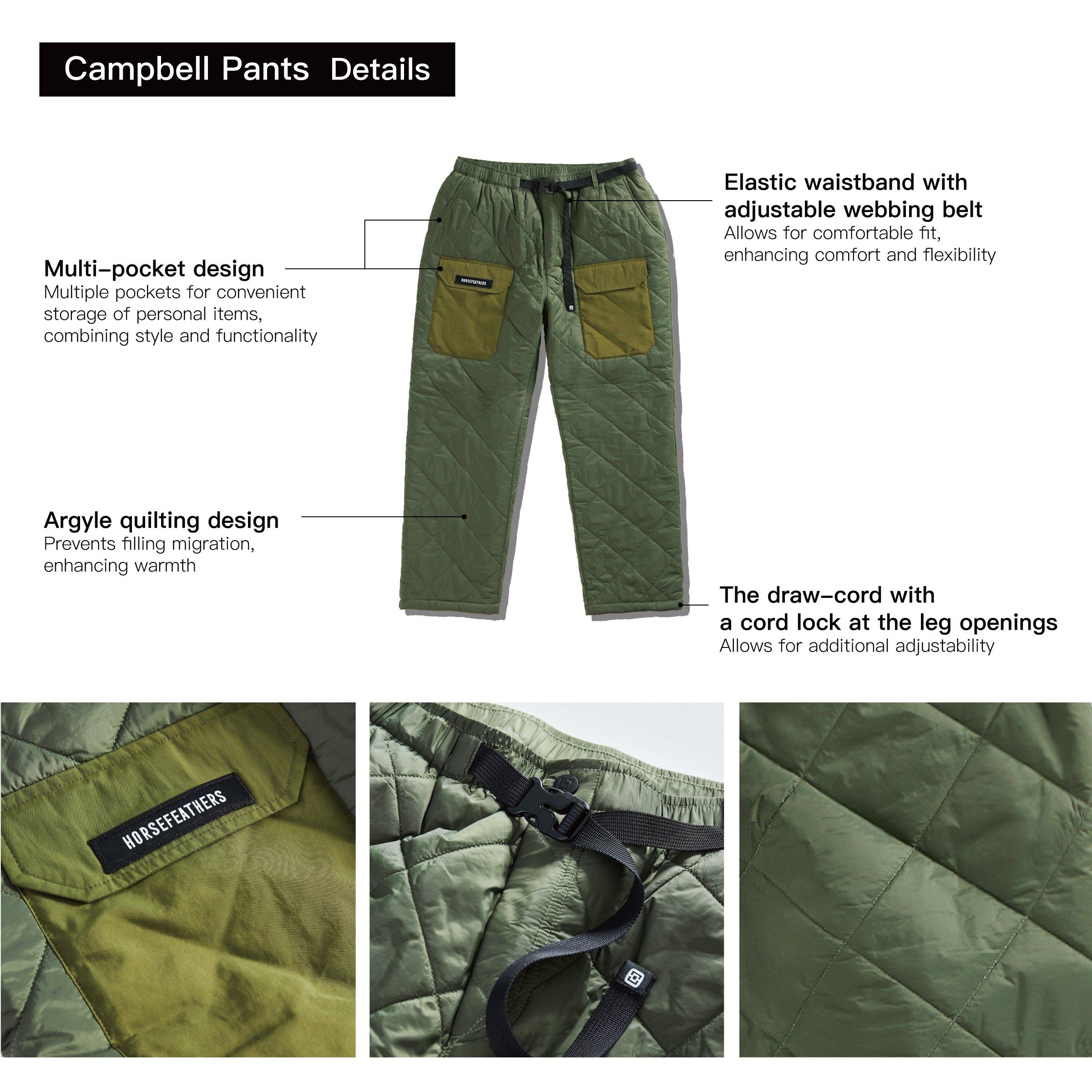 -Draw-cord with a cord lock at leg openings for adjustability