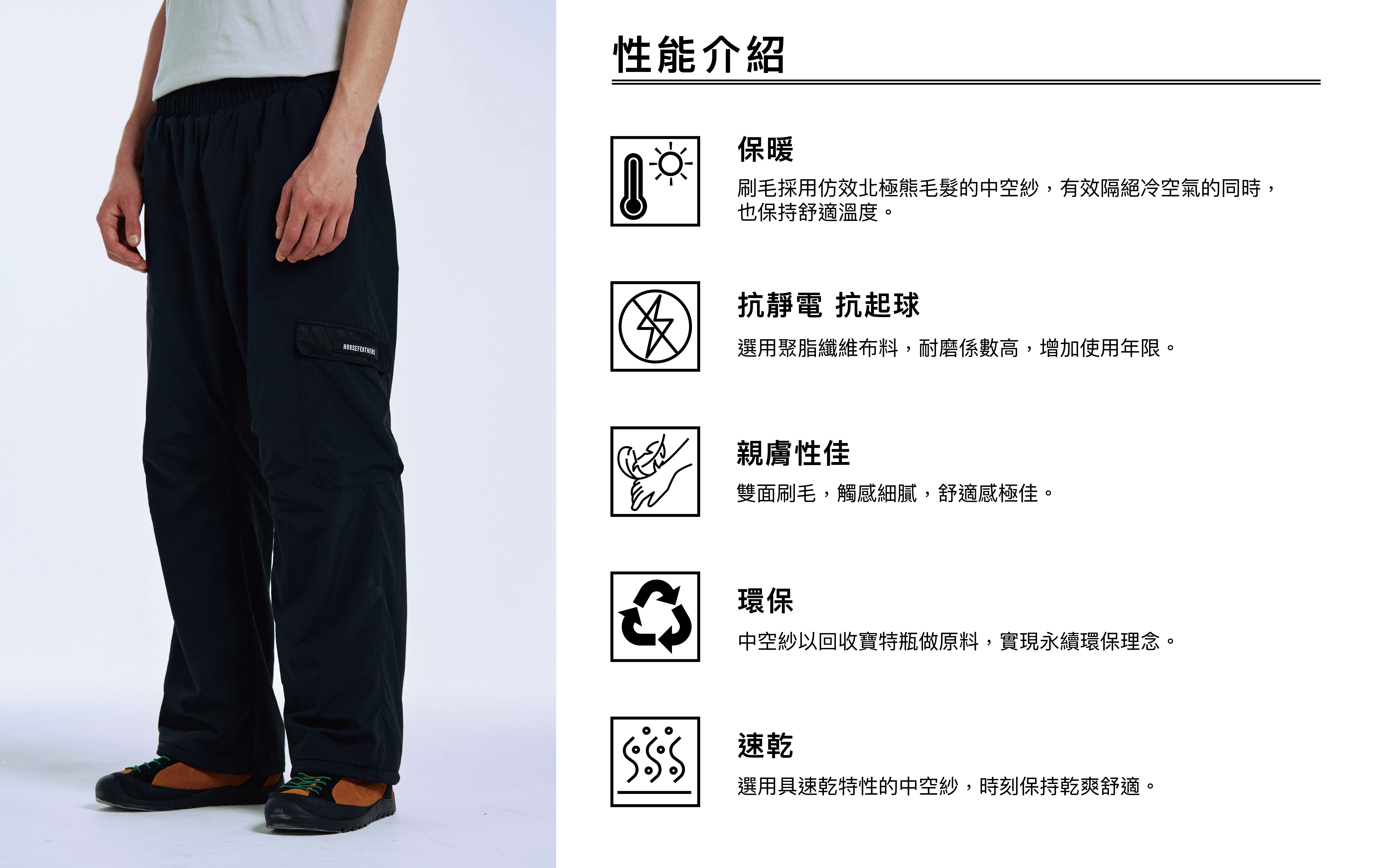 -雙面刷毛,蓄熱中空紗,輕量保暖又速乾