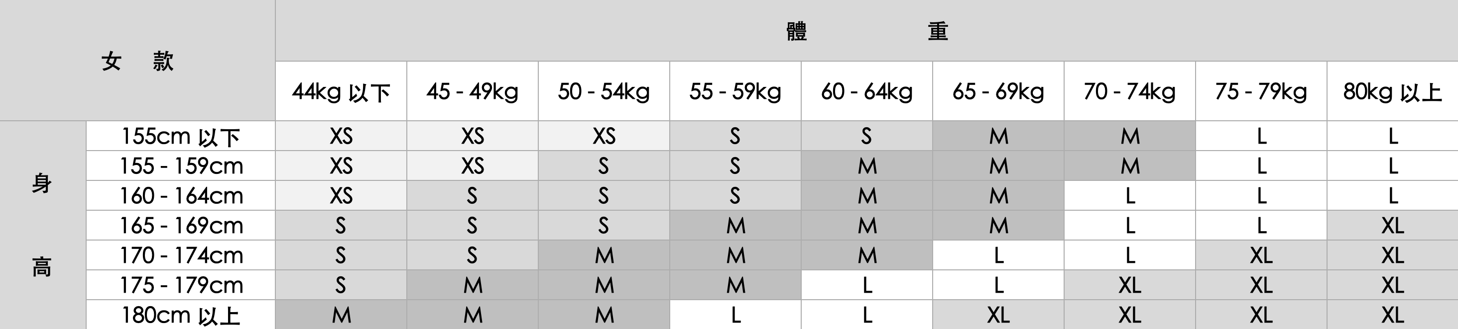 選擇雪衣/褲尺寸時,請將中層衣、防摔護具等的衣物尺寸,一起計算進去。