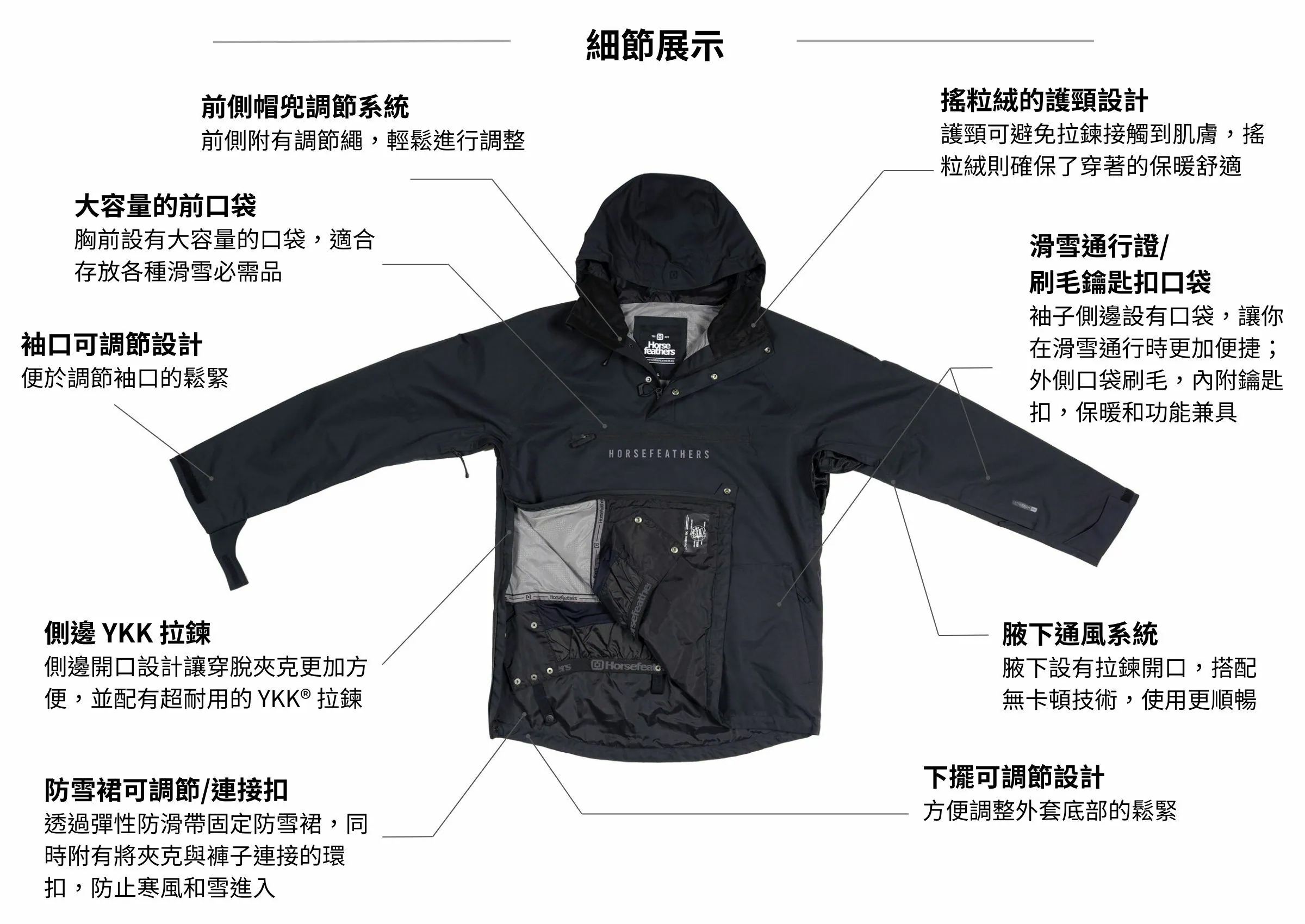 側開設計:側邊開口設計讓穿脫夾克更加方便,並配有超耐用的YKK拉鍊,滑順又穩固