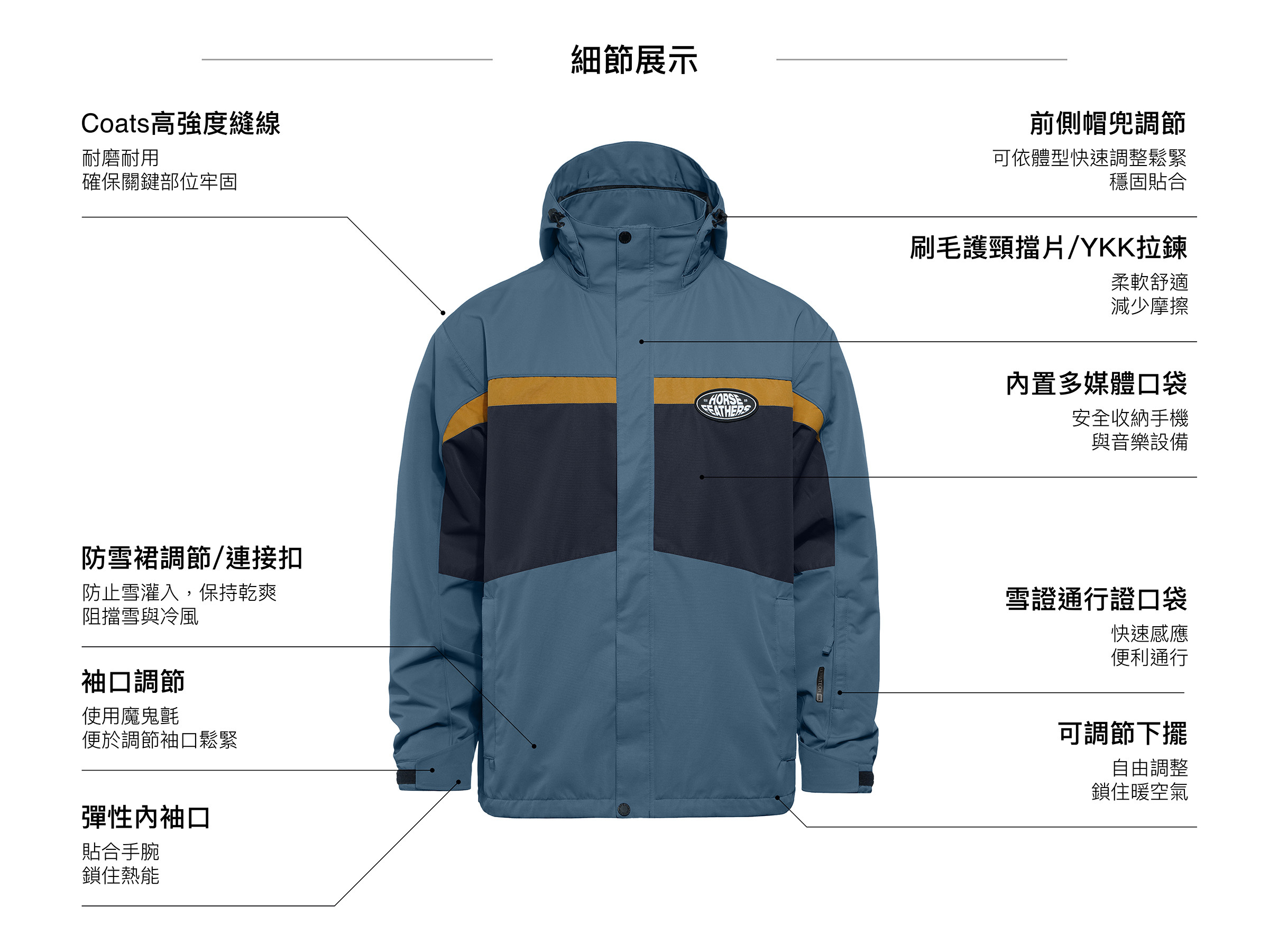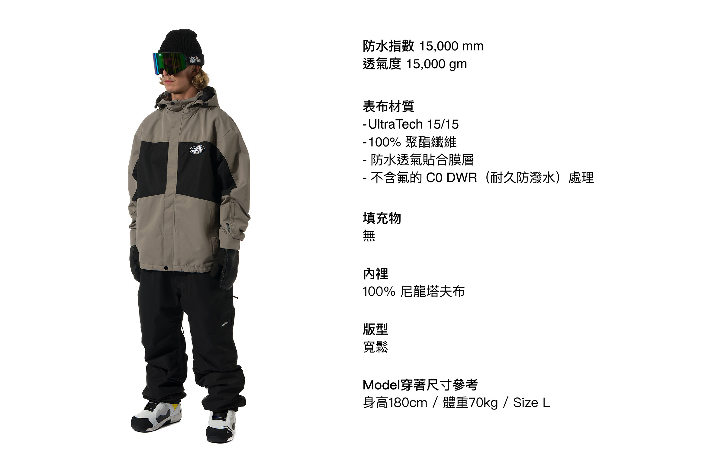 • 不含氟的 C0 DWR(耐久防潑水)處理