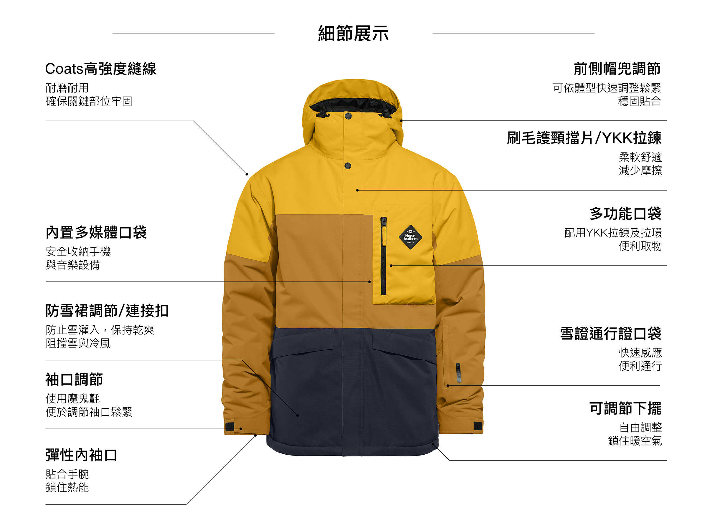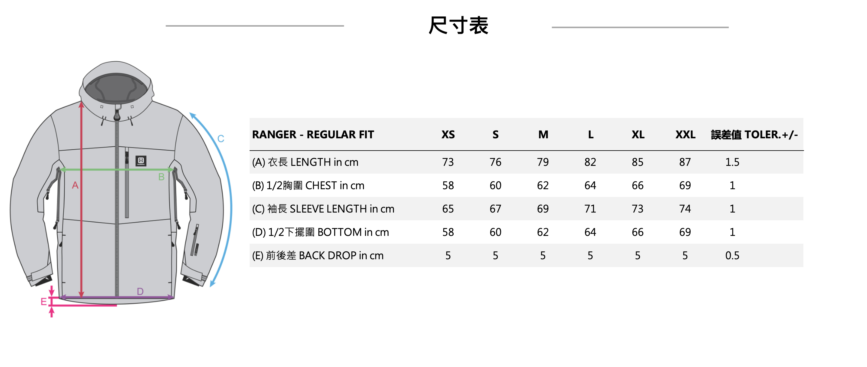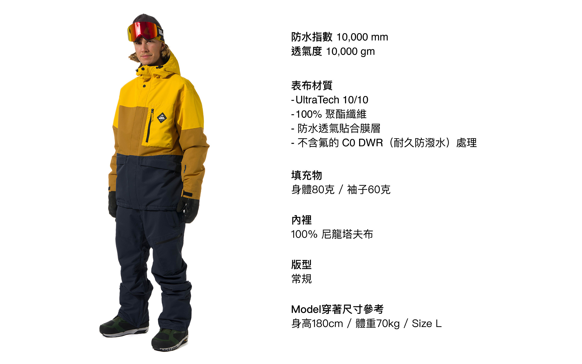 • 不含氟的 C0 DWR(耐久防潑水)處理